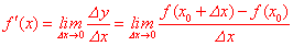 函数y=f(x)的导数,就是当自变量x在处有增量时,函数的增量与自变量的增量的比的极限,也可称为函数y=f(x)在处的瞬时变化率。记作或.如果函数y=f(x)在开区间(a,b)内每一点都可导,就说函数在开区间(a,b)内可导,由这些导数值构成的函数叫做y=f(x)在开区间(a,b)内的导函数(简称导数)。