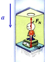 2、现象分析:当电梯加速度向下且加速度为时,