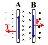 2.左手定则:伸开左手,使拇指与其余四个手指垂直,并且都与手掌在同一平面内;让磁感线从掌心进入,使四指指向电流方向;拇指所指方向就是通电导线在磁场中所受安培力方向,左手定则经常被用来判断磁场对运动电荷、电流有作用力,下图为两通电导体相互作用力情况。