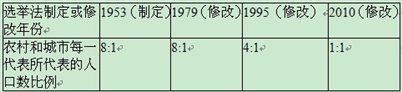 表2:农村和城市每一代表所代表的人口比例(以全国人大为例)
